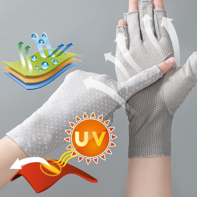 The fabric is 88% chinlon with 12% spandex. The unicolor fabric is rated UPF 50+, blocking the majority of UV radiation from the sun. The silica gel dots in the Palm of the hand can resist from slippery efficiently when u hand something or when u drive.