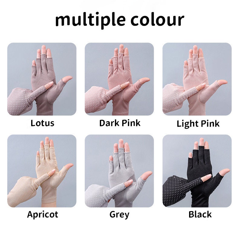 There are various colors available for u to choose and three styles too which u can choose so freely! The size is one fits all. Sold in pairs. NO palm-gliding on steering wheel + cooling effect while drying out on the skin + UV protection while swimming + skin breathing through cotton fabric. Come and choose now!